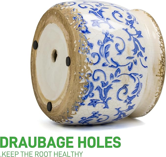 - 【Exquisite Vintage Design】 Our ceramic flower pots feature vintage ice crackle patterns and distressed craftsmanship, with exquisite floral designs that can perfectly complement any decor style. Our ceramic planters for indoor plants and outdoor plants is always eye-catching.