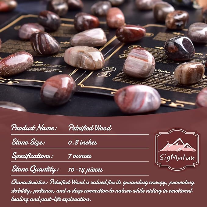 Polished Stone Set Petrified Wood Crystals, 0.8" Handpicked Tumbled Gemstones Rocks, Pebbles for Reiki, Chakra, Healing, Home Decor