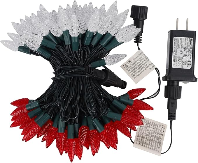 - [Christmas Decorative C6 String Lights]: With 100 White & Red individual faceted strawberry C6 LED bulbs. Each Christmas light has end-to-end connection, you can connect up to 5 sets together to illuminate a wider range