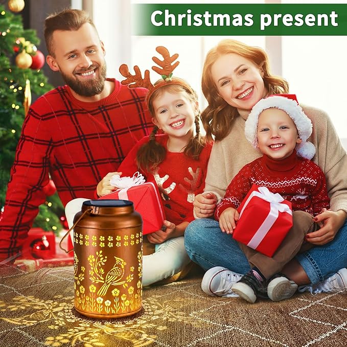 2Pack Cardinal Solar Lanterns Outdoor Waterproof Garden Decor Gifts for Women Mom Grandma Hanging Solar Lights Metal Christmas Gifts Decorative Lantern for Yard, Patio, Lawn, Pathway, Landscape