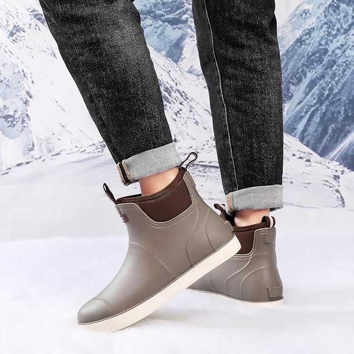 Mens Deck Boots, Saltwater Fishing Booties Rubber Waterproof Ankle Rain Boots, High-performance Footwear Chelsea Boots for Gardening Fishing Boating Camping Sailing