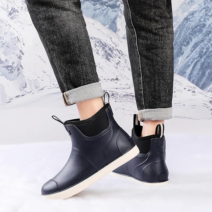 Mens Deck Boots, Saltwater Fishing Booties Rubber Waterproof Ankle Rain Boots, High-performance Footwear Chelsea Boots for Gardening Fishing Boating Camping Sailing