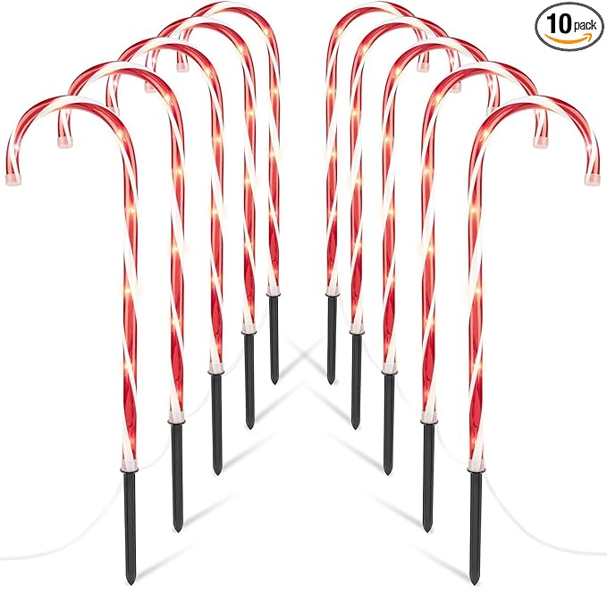 - Waterproof Christmas Candy Cane Lights: These outdoor candy cane lights are IP44 waterproof, making them great for decorating driveways, sidewalks, pathways, walkways, front yards, and lawns