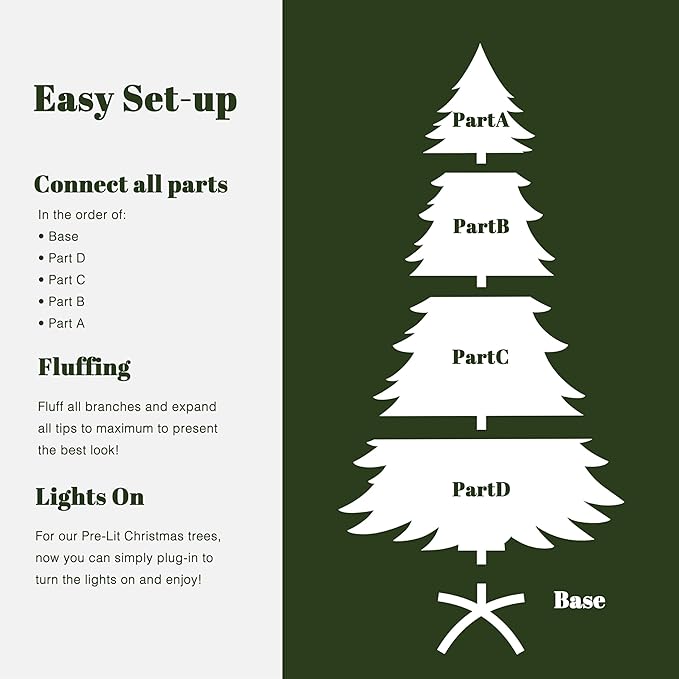 - The Christmas tree comes with a sturdy metal stand for a secure and stable base, providing peace of mind during the holiday season.