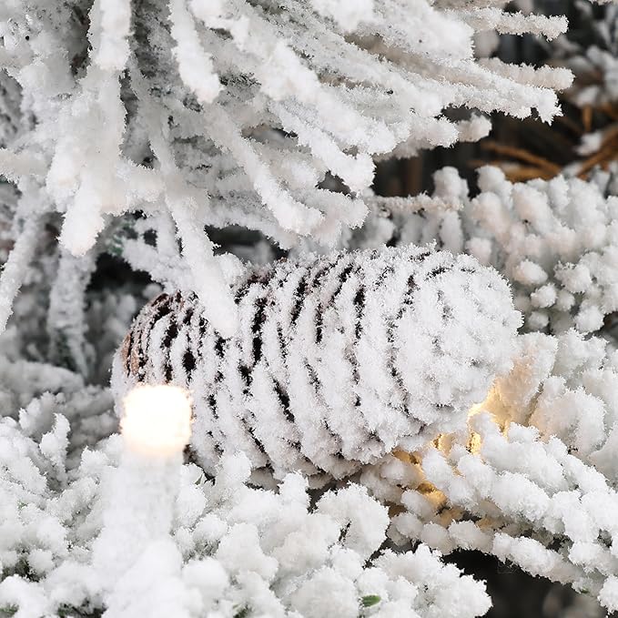 - Enjoy the beauty of a 7.5-foot snowy tree, a stunning centerpiece that will enhance any room, with full, layered branches for all your festive ornaments.