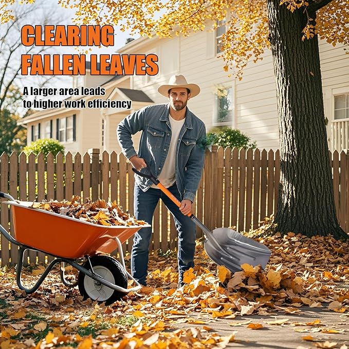 - Transfer Shovel:This is a gardening shovel,you can used it to move wood chips and old mulch off your front yard. Very convenient working around the yard removing debris, leaves .It is also an excellent all around farm chores shove,barn shovel,good for shoveling horse manure.