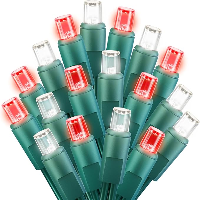 - Creative Christmas Lights: The mini lights have 50 LED bright bulbs. The Christmas lights have 18 inch leading wire, the light string is 14 FT, the total length is 15.5 FT, and the bulb spacing is 3 inches. The plug in string light is easy to use and hang, emitting bright red white light, and bringing a warm and soft festival ambiance to your home, you will be impressed by these charming lights