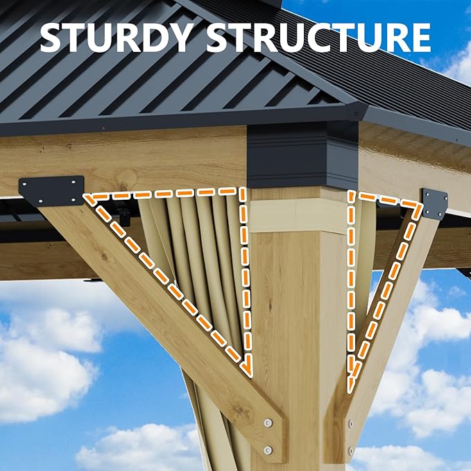 - 【VERSATILITY OF USES】: We recommend you to use our wooden hardtop gazebo to beautify your garden, lawn, backyard, deck or patio. This solid cedar gazebo is perfect for family gatherings, barbecues and garden parties, choose it when you want to have a gazebo that is sturdy enough and beautiful.