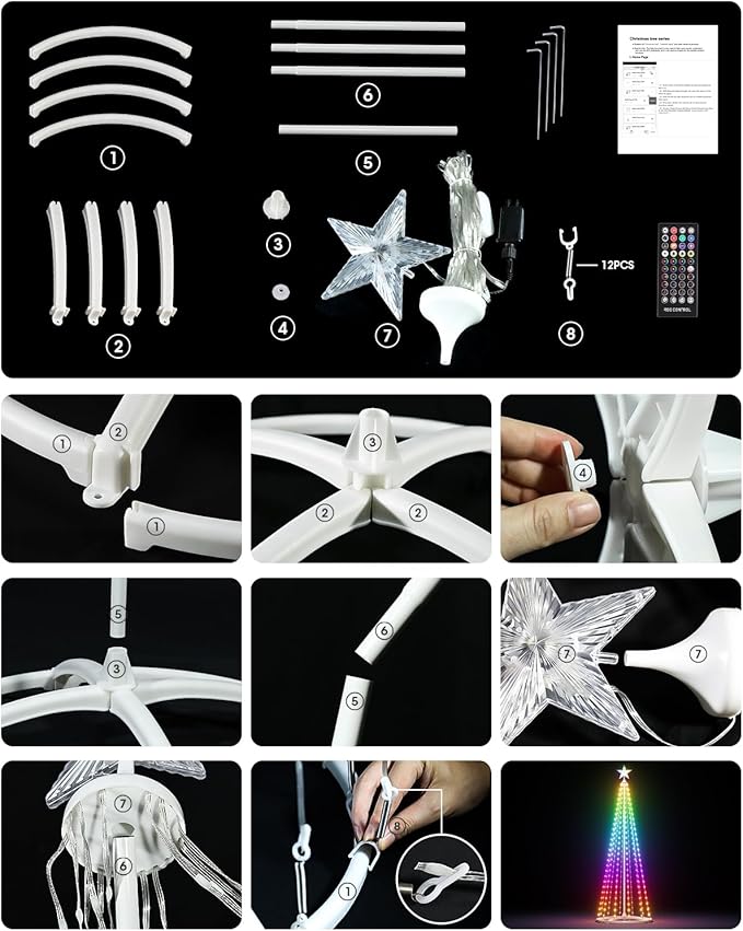 - DIY:Led Christmas tree lights can be DIY any pattern through the app. Each LED is a pixel and you can control the application individually, creating custom scenes to suit your needs. The color of the top star can change with the lights on the outdoor christmas trees for yard. A variety of RGB light colors to choose from, customize the color of each bulb, and enjoy the amazing light show inside and outside at any time.