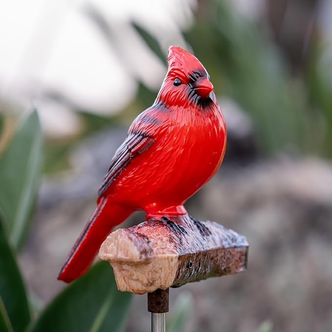 - 【Cardinal Garden Decor】Featuring dynamic motion-activated sounds & glow bring, when motion is detected, featuring a stunning red bird and a simulated cardinal call, perfect for adding a touch of nature to your outdoor space. This solar-powered, waterproof statue is ideal for any season, making it a versatile choice for both indoor and outdoor use.