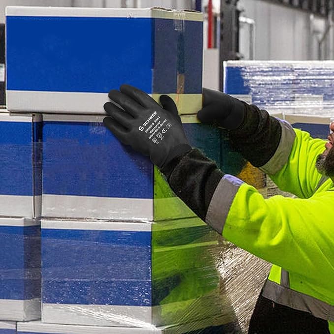 Schwer Waterproof Winter Work Gloves, ANSI A2 Cut Resistant Freezer Gloves for Outdoor Cold Weather Keep Hands Warm, Thermal Insulated Gloves for Shoveling Snow, Ice Fishing, Super Grip, XL