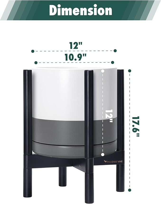 - A Complete Set: Mid-century ceramic planter, combined with a ebony wood stand that match perfectly together and looks great in anywhere.