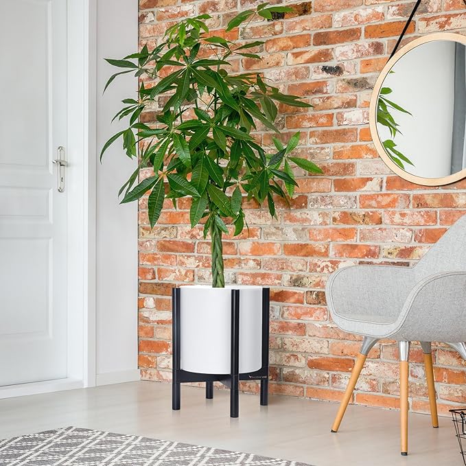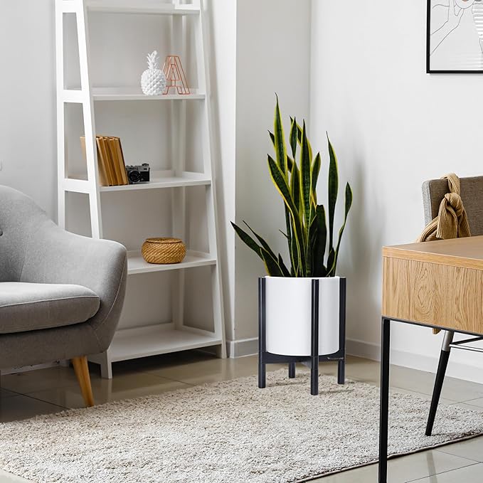 - A Complete Set: Minimalist plastic planter, combined with a sculptural, solid wood stand that match perfectly together and looks great in any home.