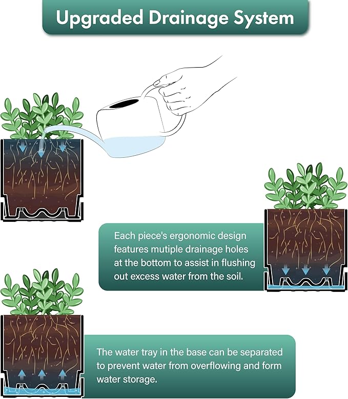 - Bottom Watering Catch Tray Design: Features a deep saucer and pot with a drainage holes, allowing excess water to drain and preventing overwatering. Keeps plants thoroughly hydrated for healthy growth via bottom watering.