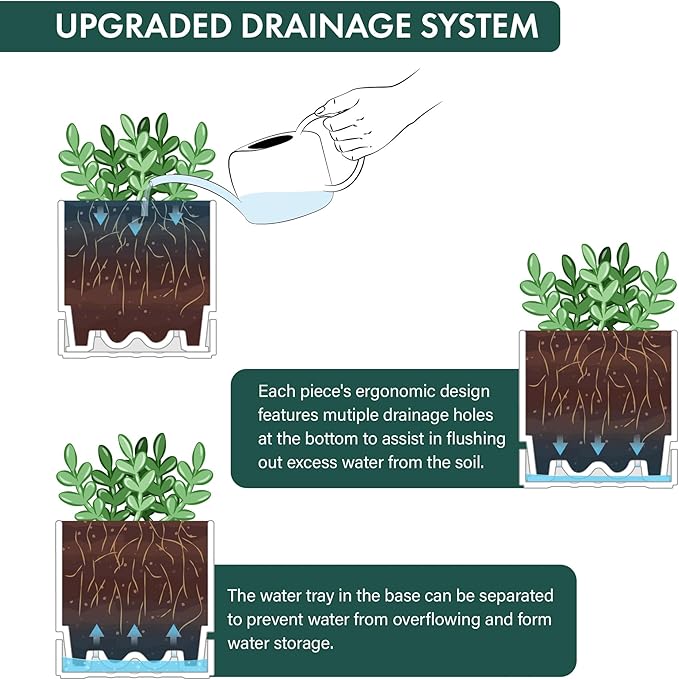 - Bottom Watering Catch Tray Design: Features a deep saucer and pot with a drainage holes, allowing excess water to drain and preventing overwatering. Keeps plants thoroughly hydrated for healthy growth via bottom watering.