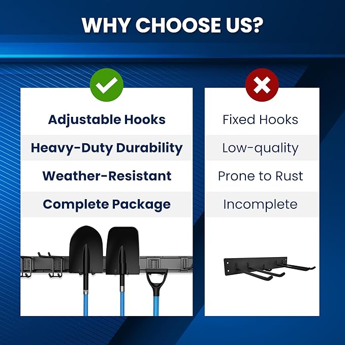 - Quick and Easy Installation: This garden tool organizer wall mount comes with all necessary hardware and straightforward instructions, making it simple to install and organize your garage or shed in minutes.