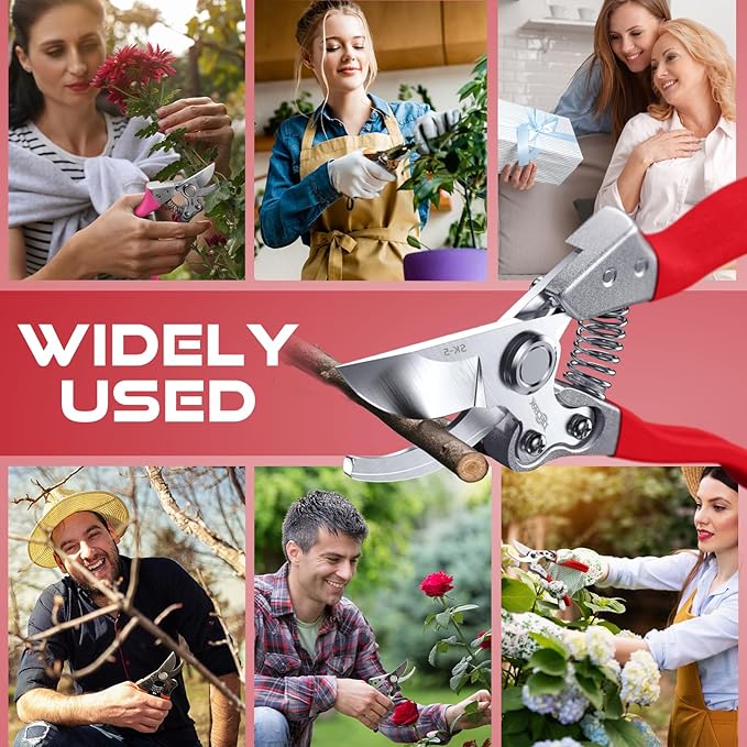 - FEMALE & ELDERLY-FRIENDLY: The ergonomically designed, non-slip rubber handles reduce hand fatigue and ensure a comfortable, stable grip. The cushioned design minimizes wrist and hand strain, making these pruners ideal for long use and for those with arthritis or anyone needing extra comfort