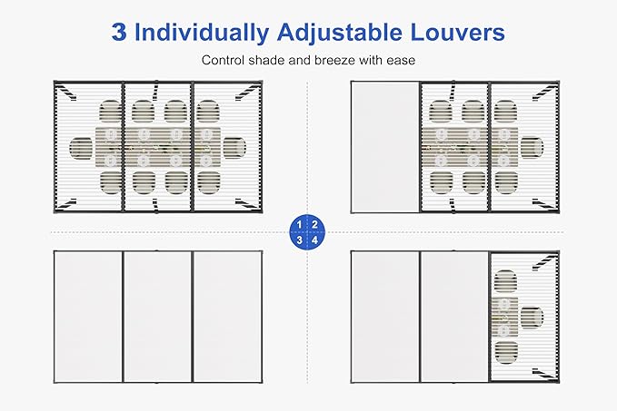 - Installation Tip: For optimal drainage, install the louvered pergola on a flat surface to prevent water accumulation