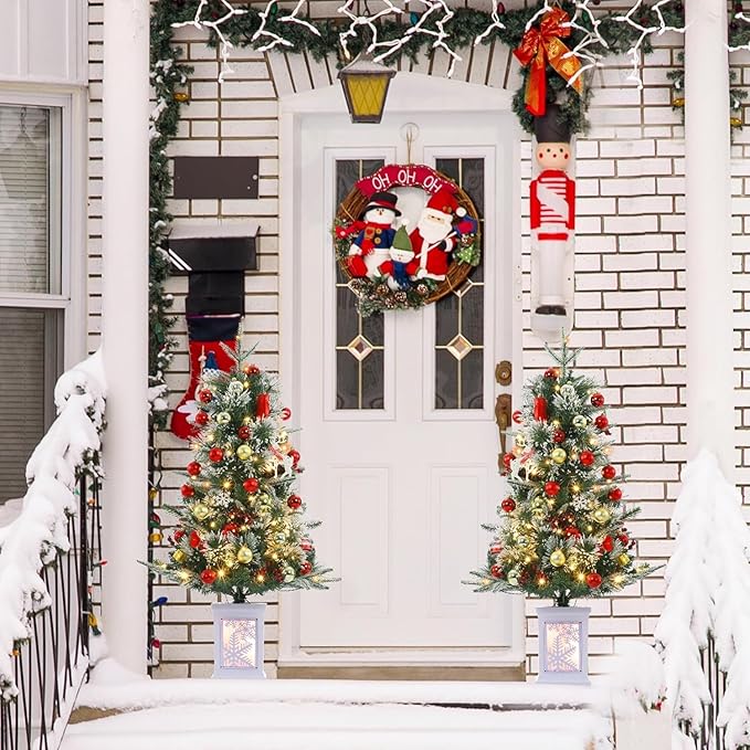- 【3-Foot Festive Tree with Flocked Pot】This 3 ft Christmas Tree features a snow-flocked, weighted potted base that adds charm and stability to tabletops, entryways, and offices. High-brightness LEDs cast a warm glow that elevates any Christmas Decoration, while the compact footprint delivers seasonal cheer wherever space is limited.