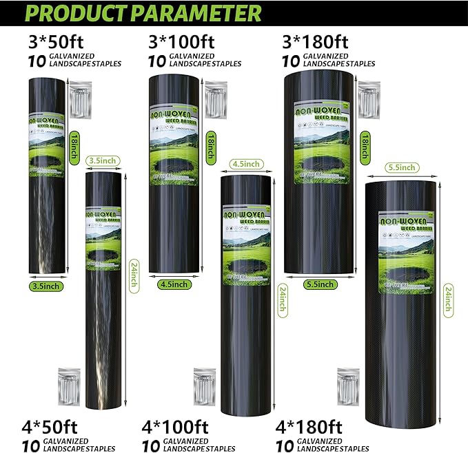 - 【Wide Applications】Our weed barrier fabric can be suitable for many different projects including landscaping, construction projects, erosion control, road stabilization, rip-rap, retaining walls, animal stables, patio, gardening etc