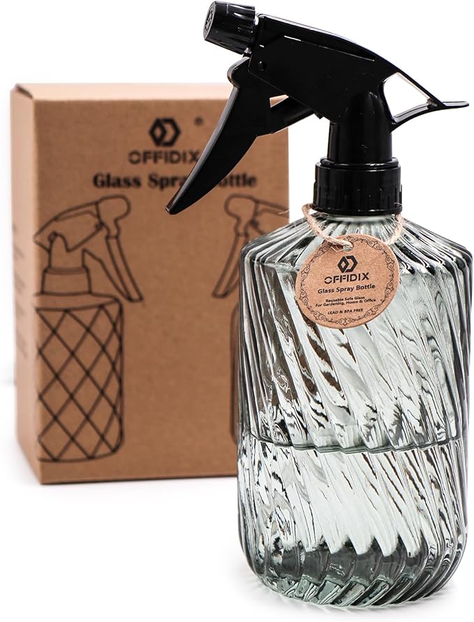 - MATERIAL:The top sprayer is made of premium PET material,and the spray bottle is made of thickened glass,not easily broken.