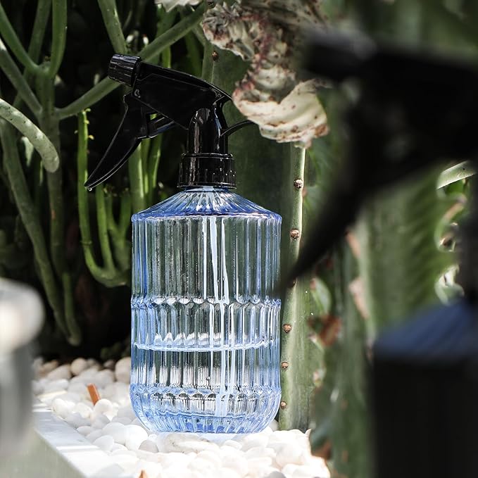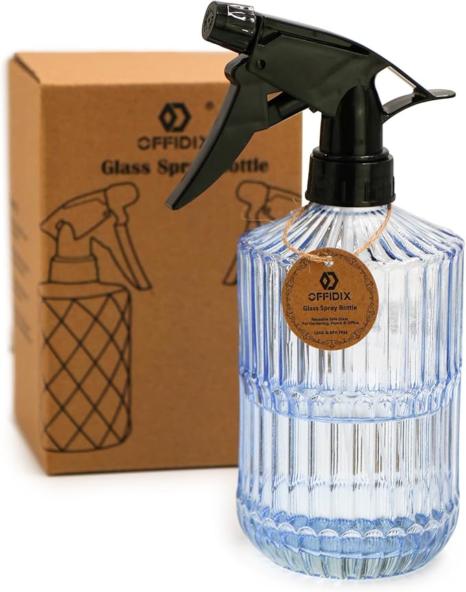 OFFIDIX Glass Spray Bottle,Plant Mister Indoor Watering Can,Adjustable Nozzle Watering Glass 0.45L/15.22oz Spray Bottle for Cleaning Solutions (Light Blue)