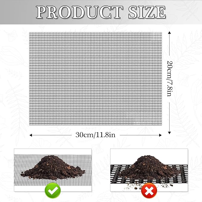 - Detailed Size: Flower pot hole mesh mat size is 30*20cm/11.8*7.8 inches. The hole diameter is approximately 2.5 mm/0.1 inch. The product sizes are large enough to be cut and stacked easily to fit any flowerpot size and all types of plants.