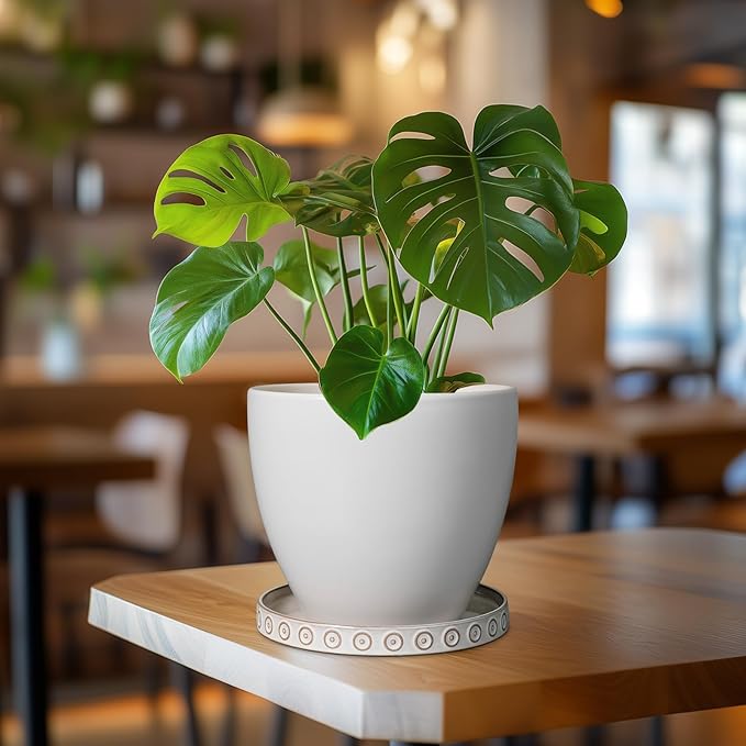 - Wide Usage in Sizes: Our ceramic plant saucer is designed to fit planters with base ranging from 4" to 6.8":4 inch/ 5 inch/ 6 inch. Please check the base size of your pot to ensure a proper match before purchasing a plant saucer for indoors