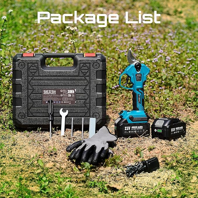 - Double Your Trimming Time:With dual 4.0Ah batteries, pruning shears extend your cutting time per charge; Perfect for all-day use, the electric branch cutter lets you trim both small bushes and large trees without frequent recharges, ensuring you finish the job in one go