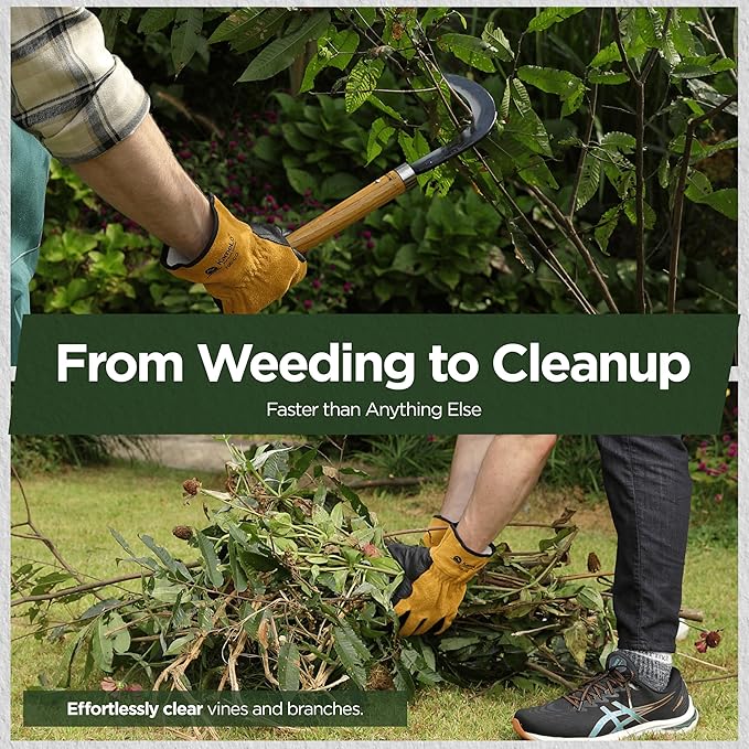 - Axe-Like Cutting Power: The thick, curved blade cuts through tough vegetation, thick branches, tall weeds, and dense brush with ease—ideal for farming, landscaping, and heavy-duty clearing.