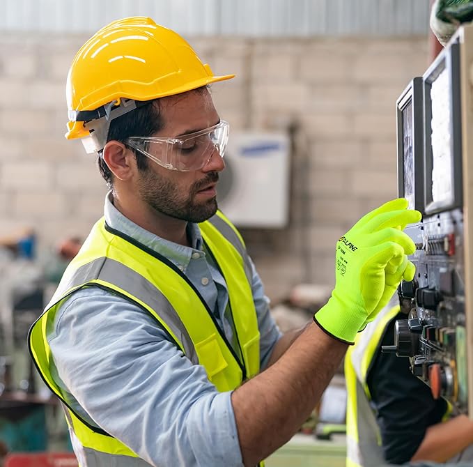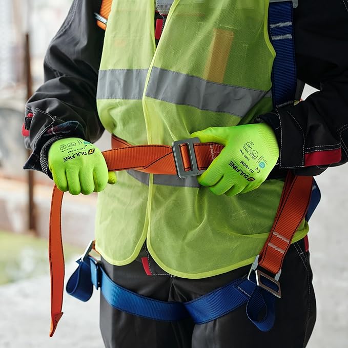 DULFINE Work Gloves for Men and Women,Hi-Vis Yellow Knit Nylon Glove with MicroFoam Nitrile Coated-12 Pairs Pack,Ideal for General Purpose,Automotive,Home Improvement,Painting(Extra Large)