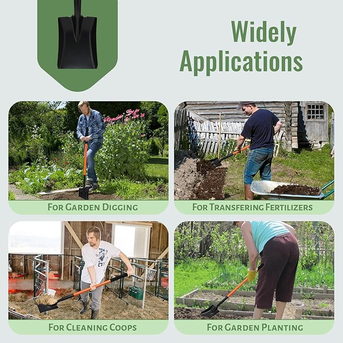 - Long Lasting & Quick Digging: Well-made digging shovel has a sharp blade,this sharpened steel blade penetrates tough soil with ease and stays sharp through heavy use, providing excellent durability for lasting value and efficiency for your digging.