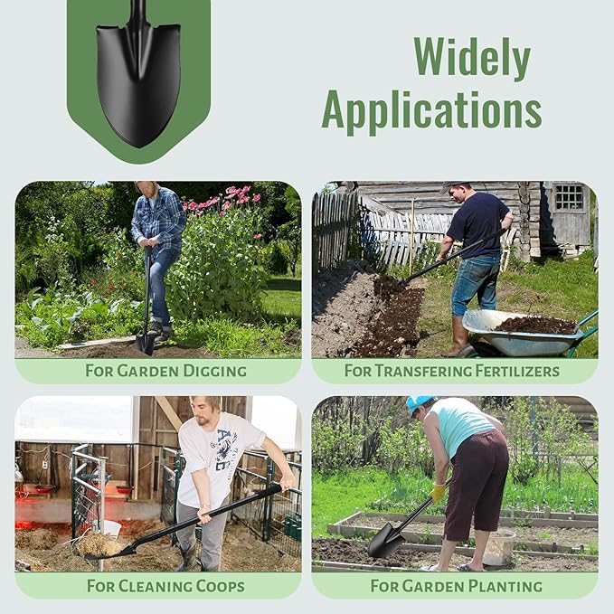 - Long Lasting & Quick Digging: Well-made digging shovel has a sharp blade,this sharpened steel blade penetrates tough soil with ease and stays sharp through heavy use, providing excellent durability for lasting value and efficiency for your digging.