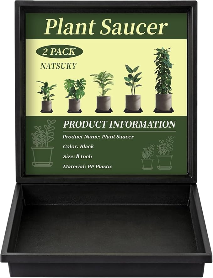 NATSUKY Square Plant Saucer 8 Inch 2 Pack, 8 10 12 14 Inch Plant Trays for Indoors Heavy Duty Plastic Flower Plants Saucers for Pots Outdoors No Holes Drip