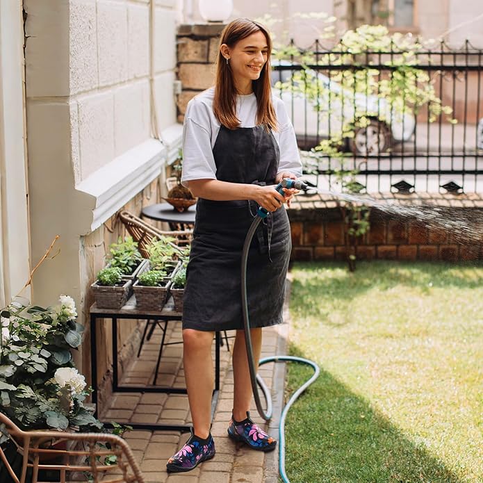 - [100% Waterproof and Mudproof]:Specially designed for women, these garden rain boots are crafted with 3.5 mm neoprene and premium rubber, providing a soft, elastic, and lightweight flexibility. They offer comprehensive waterproofing, shock absorption, and insulation to keep your feet dry and comfortable throughout the day. This style features a standard medium width. If you have narrow feet, we recommend choosing half a size down for a more tailored fit and enhanced comfort