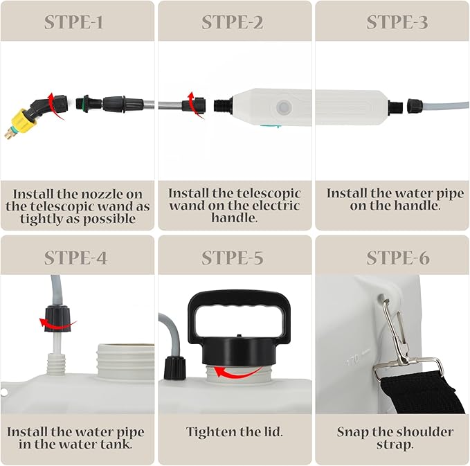 - 🍆Powerful and Effcient: The handle has a built-in 2000mAh battery, which can spray for 3 hours on a single charge, allowing for easy recharging from Type-C USB port(package included usb cable), ensuring minimal downtime. Equipped with a non-slip, lightweight handle, this sprayer provides a secure and comfortable grip, reducing hand fatigue during extended use and ensuring effortless operation during prolonged tasks.