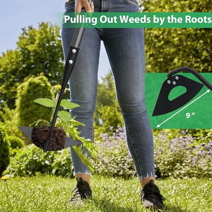 - Garden Hoe: Crafted entirely from robust metal, our hollow garden hoe and its handle ensure strength and longevity. The hoe-to-handle connection is securely fastened with triple screws, preventing any accidental detachment.