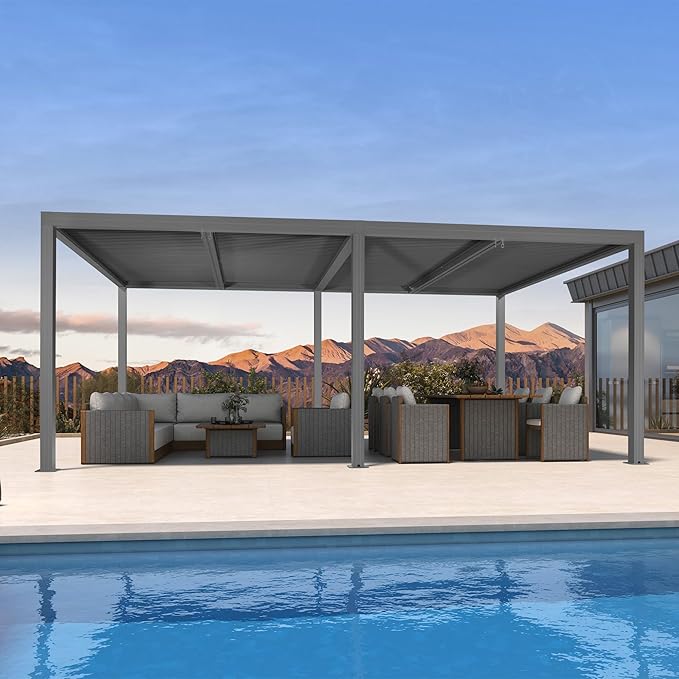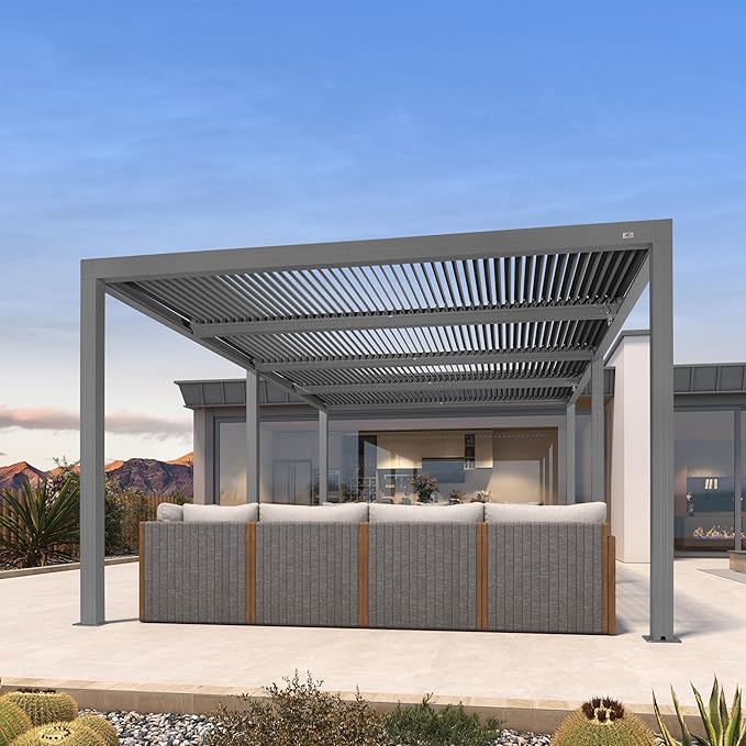 - High-Quality Finish: This louvered pergola features a premium, rust-resistant slate grey finish. The classic grey finish seamlessly complements any outdoor spaces.