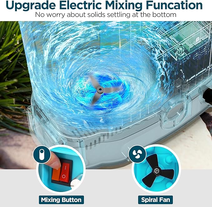 - Built-In Mixing: The electric backpack sprayer is equipped with an automatic mixing mechanism. When adding powdered or liquid herbicides, pesticides, cleaning agents, or other formulations, simply hold the mixing button to ensure thorough blending for consistent application.