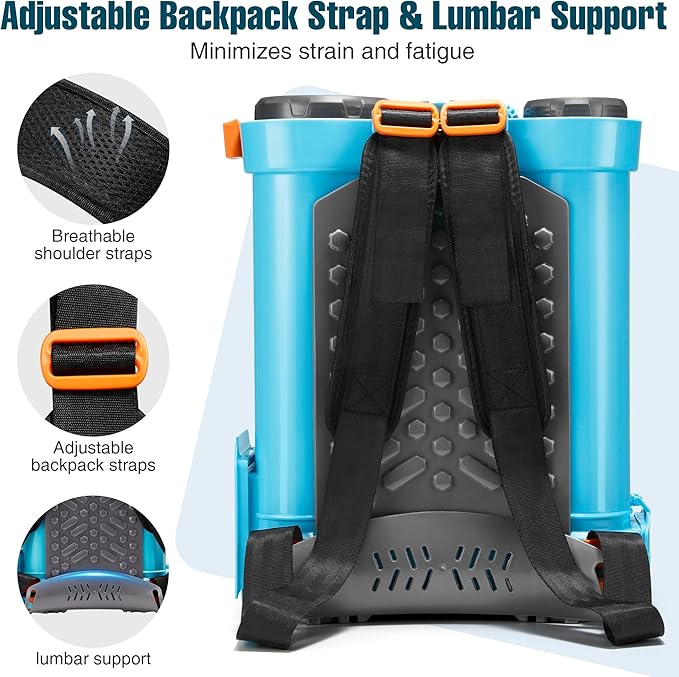 - Ergonomic Backpack Design: Designed for comfort, the sprayer features double-layer padded shoulder straps, reducing back strain and fatigue for easy mobility during prolonged use.