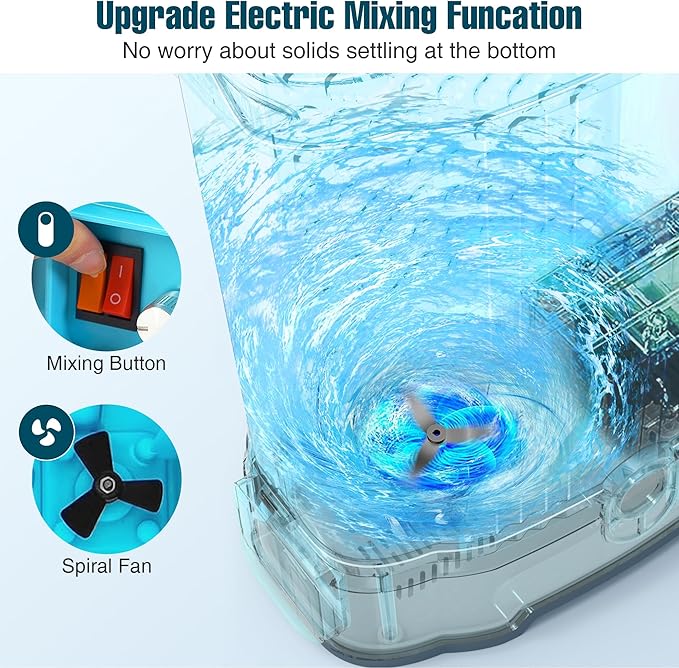 - Built-In Mixing Function: The electric backpack sprayer is equipped with an automatic mixing mechanism. When adding powdered or liquid herbicides, pesticides, cleaning agents, or other formulations, simply hold the mixing button to ensure thorough blending for consistent application.