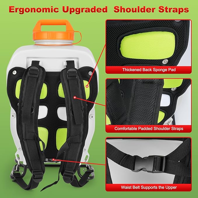- Comfortable & Lightweight Design: Built with ergonomic shoulder straps and a lightweight yet sturdy LDPE box material, this backpack sprayer ensures better weight distribution and reduced fatigue. The back heat dissipation design adds extra comfort during long spraying sessions.