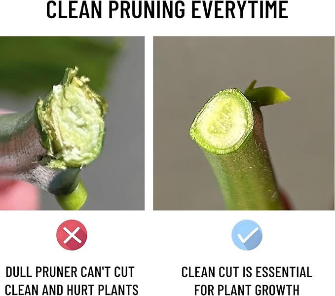 - 【Multi-Purpose Cutting Master】Precision-ground dual-edge blades handle 8+ gardening tasks: rose pruning, bonsai shaping, herb harvesting, vine trimming. Beveled sap groove keeps cutting surfaces clean - 98% users report cleaner cuts than bypass shears.