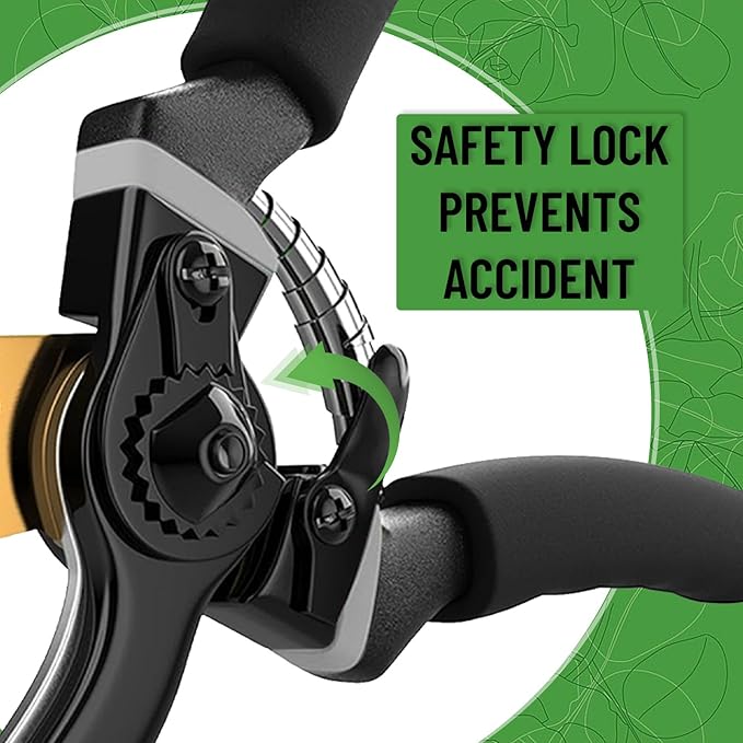 - 【Premium SK5 High-Carbon Steel Blades】SK5 steel blades effortlessly cut through 3/4 inch branches with surgical precision. Micro-Teflon coating reduces friction by 40% and prevents sap buildup - stays sharp 5X longer than standard shears.