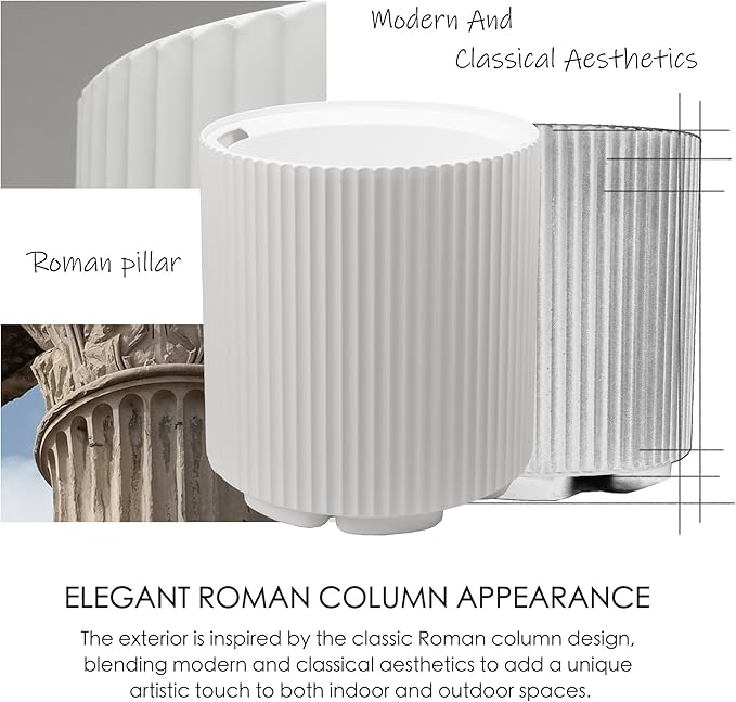 - Elegant Roman Column Appearance: The exterior is inspired by the classic Roman column design, blending modern and classical aesthetics to add a unique artistic touch to both indoor and outdoor spaces.