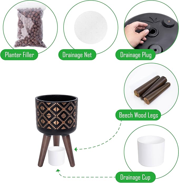 - Functional Accessories: Includes a drainage hole, optional plug, mesh net, water catch cup, and ceramic fillers for optimal plant care.