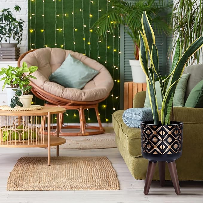- Sophisticated Design: Mid-century modern aesthetic with a geometric fiberclay pot, complemented by solid wooden legs.