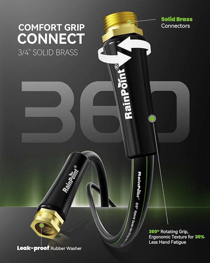 - 【360° Rotating Handle】The 360° rotating handle of water hose 5 ft reduces hand strain by 30%, making hose easier to maneuver. The textured grip of 5 ft garden hose provides better control, ideal for connecting to faucets, sprinklers, or high-pressure nozzles