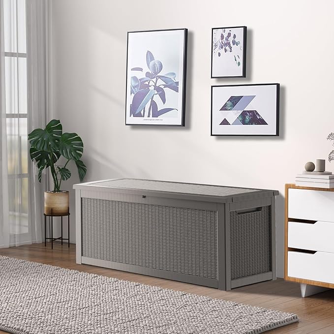 320 Gallon Waterproof Deck Box, Lockable Resin Storage Box for Patio Furniture Cushions Garden Tools and Outdoor Delivery Storage, Coffee
