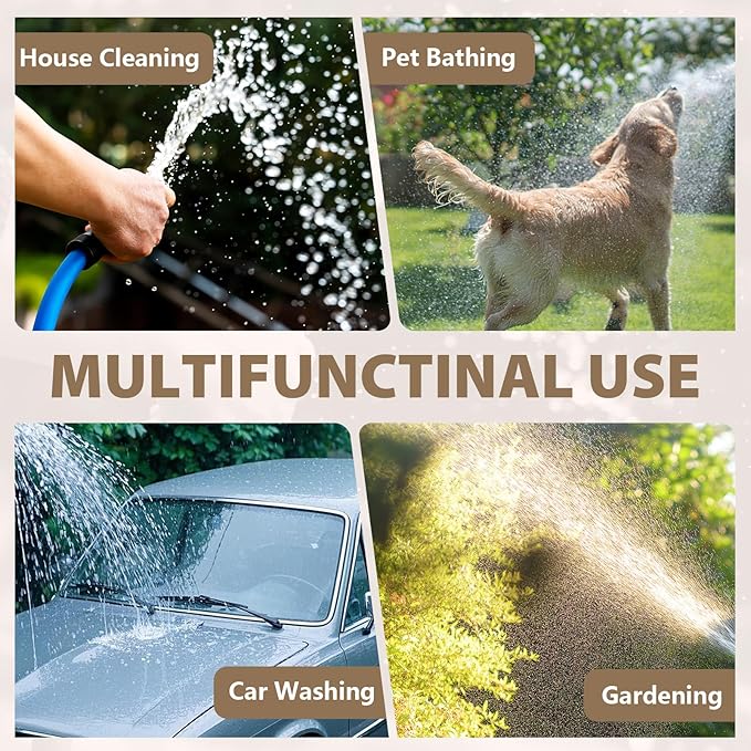 - All-Weather Garden Hose: Constructed with an upgraded Hybrid material,It retains its flexibility in extreme temperatures ranging from -50°F to 190°F, withstand temp changes fall, winter and spring while staying flex enough to handle water discharge.
